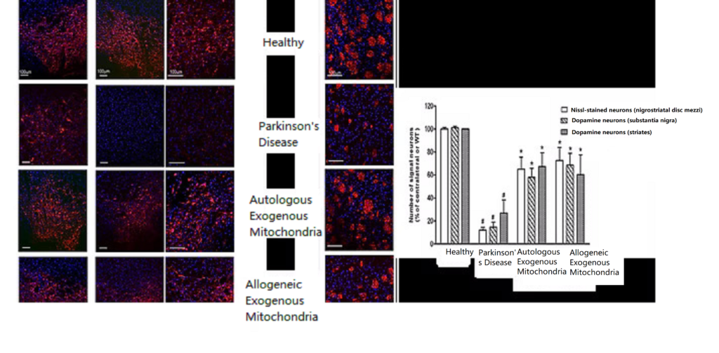 Parkinson’s disease is caused by the death of dopamine-producing neurons in the substantia nigra of the brain, leading to the inability to produce dopamine and resulting in motor disability. Both genetic and environmental risk factors can cause the death of dopamine neurons, with mitochondria controlling cell fate. In healthy individuals, damaged mitochondria can be metabolized, but when the damage repair mechanism is impaired, mitochondrial damage accumulates, leading to increased oxidative stress and ultimately the inability of mitochondria to produce energy, resulting in the death of dopamine neurons. Current clinical treatments aim to directly or indirectly increase dopamine activity to alleviate motor disability, but they cannot salvage already dead dopamine neurons. Research has found that external mitochondrial therapy in Parkinson’s disease rats restored the number of dopamine neurons in the brain, increased mitochondrial functional proteins, and significantly improved motor function, effectively reducing motor disability caused by Parkinson’s disease. Therefore, “mitochondrial reconstruction therapy” offers a new direction for the treatment of Parkinson’s disease.